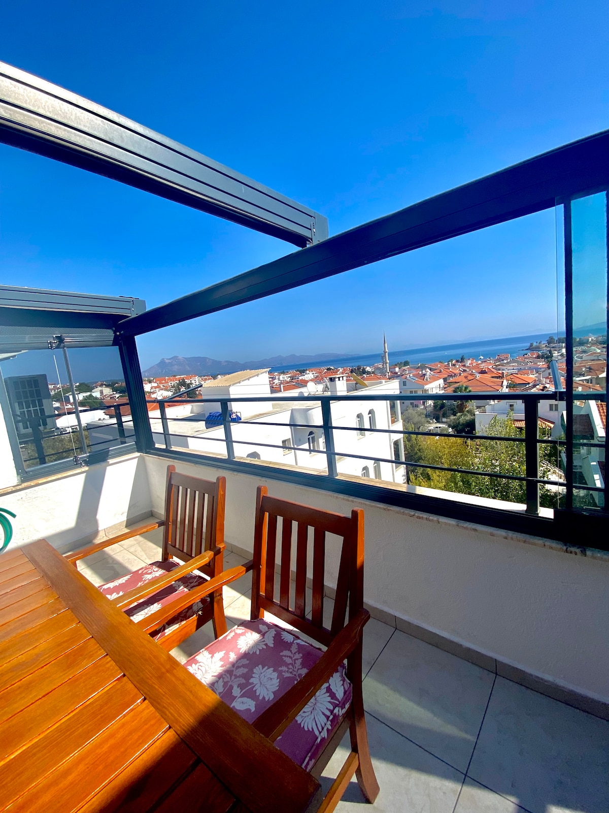 Our villa is positioned at the highest point in town looking down at Datca and its fantastic beaches and harbor. We have a full 180 degree view from every window of the Mediterranean and Aegean sea. We take pride in our cleanliness and professionalism. Come and wake up to an amazing view of this quaint town and bring your BBQ goodies! Our terrace is massive and a great place to host gatherings and get together's. 15min walk from town and 5 min to the nearest grocery store (Migros) and City Hall.