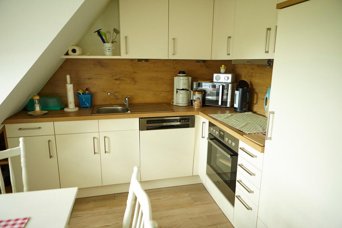 Փոքրիկ 38 քմ մակերեսով բնակարան թաթախված տանիքում ՝ ցնցուղասենյակով, խոհանոցով, նախաճաշով և աշխատանքային տարածքով, ինչպես նաև պատի արկղով ։ Շատ խաղաղություն, գեղեցիկ բնություն և արագ ինտերնետ: Մեկ օգտագործման համար նախատեսված մանղալի հարմարություններով այգի ։ Kiel կարելի է հասնել մեքենայով 15 րոպե կամ 15 րոպե ոտքով եւ 15 րոպե գնացքով: Արևմտյան լճի լողանալու տարածքը կարելի է ոտքով հասնել 10 րոպեում, իսկ Բալթիկ ծովի կանգառը Քիել - Շիլկսեում 27 կմ հեռավորության վրա է: Ձեր էլեկտրոնային մեքենան կարող է բեռնվել Wallbox - ով:
