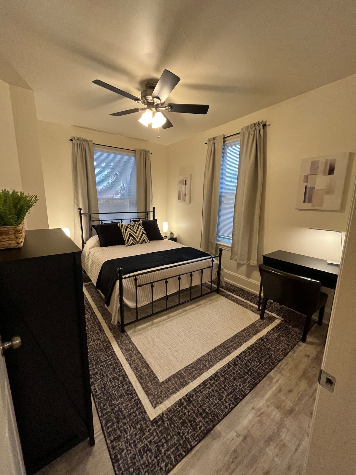 Շրջան 12B Airbnb - ն գտնվում է Հարիսբուրգի, Լանկաստերի, Հերշիի և Յորքի կենտրոնում ։ Տարածքն ունի մեկ լոգասենյակ և մեկ ննջասենյակ ՝ մեծ մահճակալով, հարմարավետ հյուրասենյակ, այդ թվում ՝ հատուկ աշխատանքային տարածք և խոհանոցիկ ։ Հյուրերն օգտվում են առանձին հետևի մուտքից և ծածկված կայանատեղիից ։ Հարկաբաժինը գտնվում է Թիրախից 5 րոպե հեռավորության վրա, իսկ Հերշիի մարզադաշտից կամ զբոսայգուց ՝ 20 րոպե հեռավորության վրա ։ Հրդեհաշիջման հավելվածները պահանջում են ձեր սեփական մուտքերը: