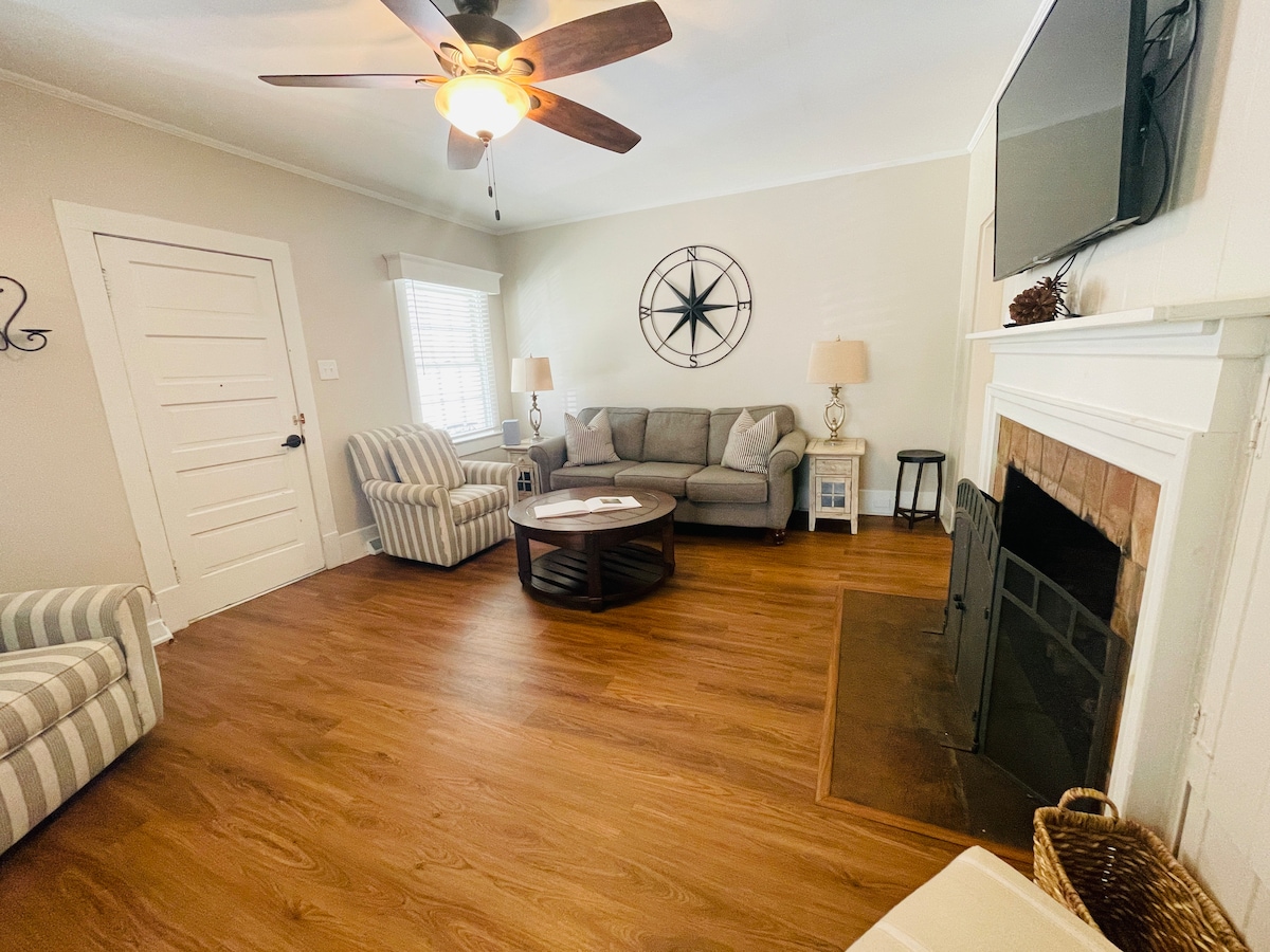 Come cruise into the Carolina Cottage, a 1933 gem with a renovated interior & a spacious deck to unwind. The interior blends modern comforts with unique antiques, featuring pictures detailing Mocksville's rich history (you'll learn something new in each room). Centrally located just off Main Street in downtown Mocksville, this cottage is one of the closest residences to downtown amenities, such as restaurants, shopping, & pubs. Feel free to enjoy free Wifi, Roku TV, books, board games, & coffee.