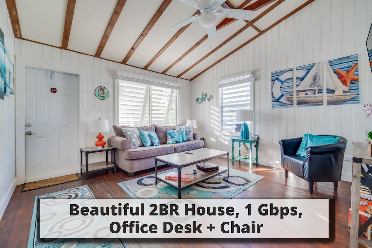 Բաց և ընդարձակ 2BR/1BA տուն ։ Ինչպես իմ բոլոր հարկաբաժինները, այն ունի ՝ Խոհանոցը հագեցած է իրական խոհարարության համար Ուժեղ Wi - Fi - ի ազդանշան յուրաքանչյուր սենյակում և բացօթյա տարածքների մեծ մասում Սմարթ հեռուստացույց, որպեսզի կարողանաք դիտել ձեր Netflix - ի, HBO - ի, Disney - ի և այլնի բաժանորդագրությունը Լողափի հանդերձանք ՝ աթոռներ, հովանոցներ Լողափ հասնելու ուղղությունները, կայանման վայրը Օրորոց