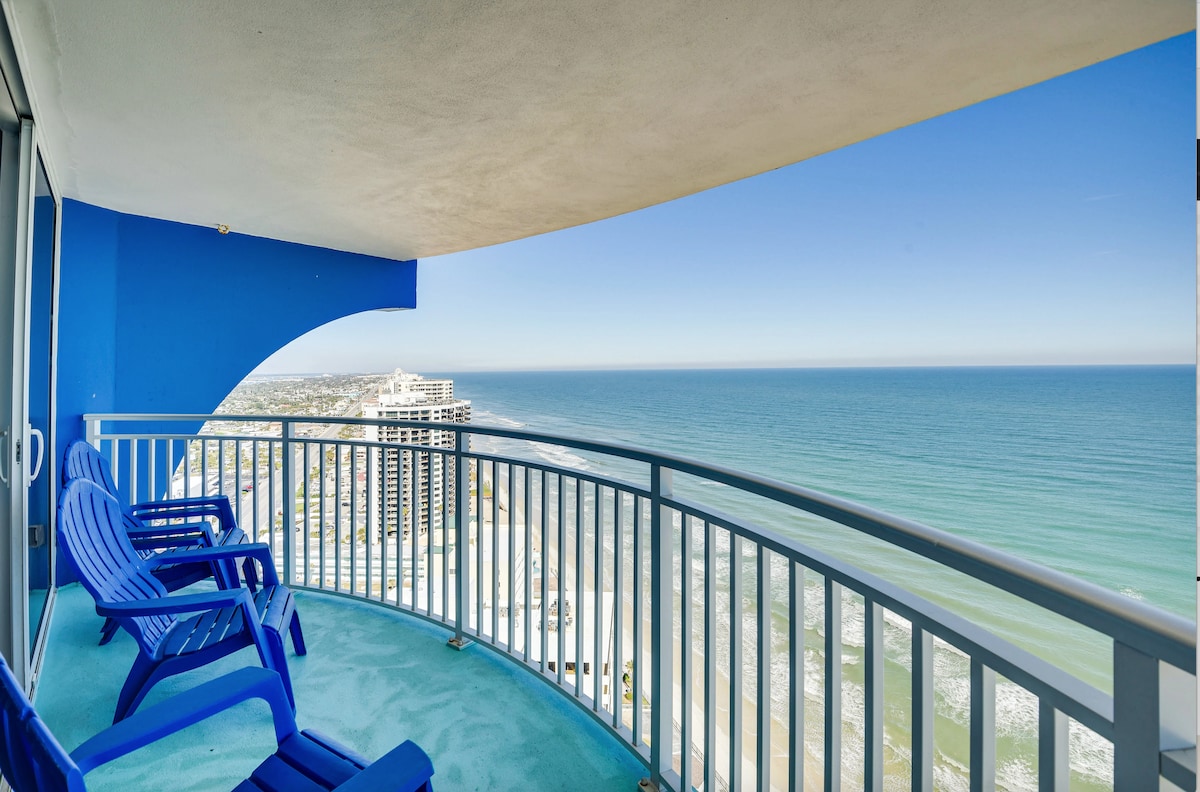 Իսկական պենտհաուս՝ Դեյտոնա Բիչ Շորսում։ Վերին հարկում գտնվող այս հազվագյուտ 2 սենյականոց/2 լոգասենյակով կոնդոմինիումն ունի հսկայական պատշգամբ՝ դեպի օվկիանոս և ափամերձ ջրային ճանապարհ բացվող համայնապատկերով։ Լուսավոր, օդային և շատ ընդարձակ՝ այս բնակարանը բացարձակապես հիասքանչ է։ Վայելեք արևածագը Ատլանտյան օվկիանոսի վրա, մայրամուտը ICW-ի վրա և անկրկնելի մեկուսություն՝ առանց վերևի հարևանների։ Լուսավոր, զով և կատարյալ տեղ՝ լողափից մի քանի քայլ հեռու․ եզակի հանգիստ ծովափին։ Ամրագրեք հիմա և ստեղծեք հիանալի լողափնյա հիշողություններ ընկերների ու ընտանիքի հետ։