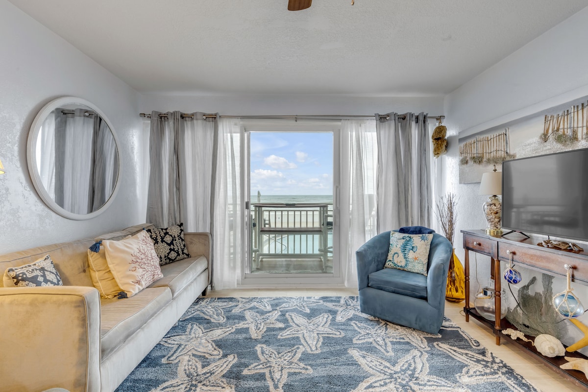 ✨ Limited-Time Construction Discount 2026! While the pool’s still under construction & exterior building work is in progress, you can enjoy a budget-friendly stay steps from the beach! ⚠️ Balcony is under construction. Can still view ocean. This 1st-floor oceanview condo sleeps 4 and offers a front-row seat to sunrises, surfers, and dolphins. Just steps from the beach in Shores! Includes a sleeper sofa, convection microwave, and hot plate for easy meals. Cozy, convenient, and discounted