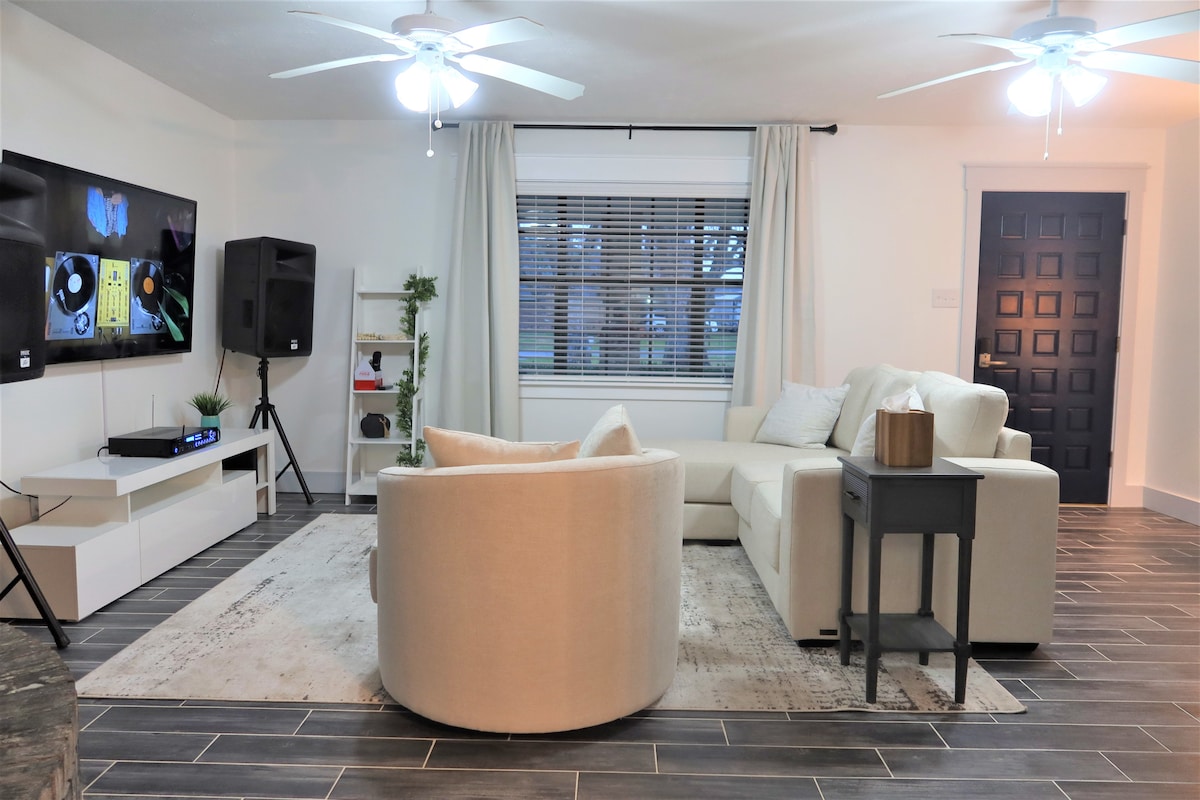 Baja Bungalow - ն ունի այն ամենը, ինչ ձեզ հարկավոր է և ավելին: Այս նորաոճ տարածքն ունի ընդարձակ, գրավիչ հյուրասենյակ և զեն, սպա - ննջասենյակ ՝ վերջնական հանգստի համար ։ Ամբողջական խոհանոցը հագեցած է առավոտյան սուրճի կամ երեկոյան խոհարարության համար նախատեսված ամեն ինչով ։ Հանգիստ քնեք պրեմիում սպիտակեղենով շքեղ ներքնակում ։ Հանգստացեք թավշյա բազմոցին կամ աթոռին ՝ վայելելով 50" Roku սմարթ հեռուստացույցը ։ Հավաքեք թեթև.մենք ունենք լոգասենյակի բոլոր անհրաժեշտ հարմարությունները, այդ թվում ՝ ձեռագործ օճառը, կատարյալ հարմարավետ այցի համար ։