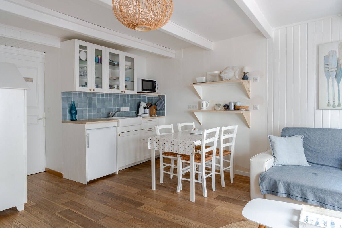 26 մ² մակերեսով վերանորոգված ստուդիա խաղաղ Սեն Ժան փակուղում, Օնֆլյորի սրտում, նավահանգստից ընդամենը մի քանի քայլ հեռավորության վրա։ Հանգիստ և հմայիչ՝ 2 հյուրի համար։ Աշխող բուխարի (փայտը ներառված չէ, հասանելի է սենյակների սպասարկման միջոցով)։ 150–179 սմ մահճակալ, խոհանոց, լոգարան, Netflix, Wi-Fi։ Ընդհանուր բակ։ Անվճար կայանատեղի մոտակայքում կամ մեծ տարածք 8 րոպե հեռավորության վրա։ Սպիտակեղենը, մաքրումը ներառված է։ Կենդանիներ թույլատրվում են։ Ամրագրեք հիմա։