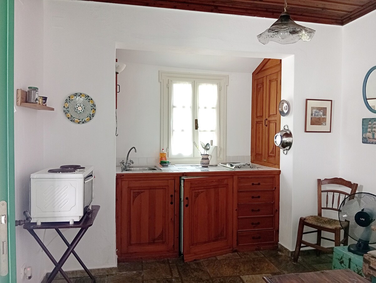 Հանգիստ եղեք 28 մ2 մակերեսով այս անխռով և գեղատեսիլ, հմայիչ փոքրիկ տանը, որը տեղադրված է արտաքին ցնցուղով գաղտնի պարտեզում ՝ Սկոպելոսի սրտից 3 րոպե հեռավորության վրա ։ Հանգիստ, բուռն ՝ լողափում անցկացրած երկար օրերից հետո, առավոտյան արևայրուք ՝ հանգիստ թաղամասում բնությամբ շրջապատված գեղեցիկ սուրճի համար ։ Այն կիսում է պարտեզի նույն մուտքը «Լիդա »- ի հետ, որը մեր երկու հյուրատներից մեծն է (կարող եք այցելել այս տարածքը ՝ ավելի ընդարձակ տարբերակ ստանալու համար )։