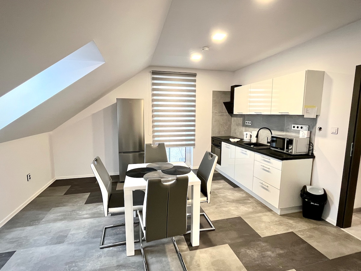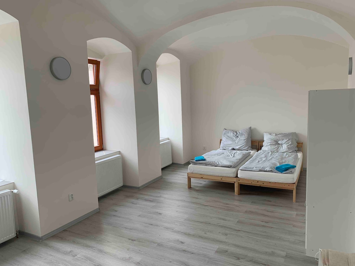 Երկու ննջասենյակով հեքիաթային բնակարան Raschauer, հարմարավետ է 4 հյուրի համար ։ Իդեալական է երեխաներ ունեցող ընտանիքի համար ։ Առանձին զուգարան, ցնցուղ, խոհանոցիկ, բնակարանները լիովին հագեցած են անհրաժեշտ ամեն ինչով, սպասքով, ապակիով, սպիտակեղենով, սրբիչներով, սմարթ հեռուստացույցով ՝ Netflix - ով, սառնարանով, սալօջախով, թեյնիկով, միկրոալիքային վառարանով, Wi - Fi - ով և այլն ։ Տարածքի հարևանությամբ գտնվող ավտոկայանատեղիում կայանատեղին անվճար է ։ Ցանկանում ենք ձեզ առաջարկել նախաճաշի ճաշացանկ ՝ 159, - CZK անձ/օր գնով ։
