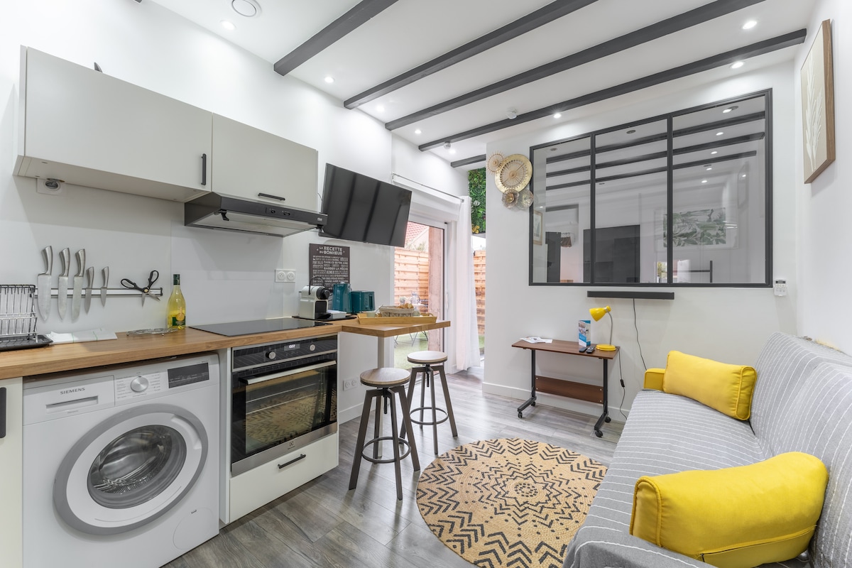 Ստուդիա, որը գտնվում է մեր պարտեզում ՝ Decines կենտրոնին և տրանսպորտին մոտ Խոհանոց ՝ միկրոալիքային վառարանով, սալօջախներով, սուրճի ապարատով, թեյնիկով և տոստերով Ննջասենյակը բաղկացած է երկու հոգու համար նախատեսված փոխարկելի բազմոցից (140* 190 սմ) Առանձին տախտակամած Տրամադրվում են սպիտակեղեն և հիմնական պարագաներ Կայանատեղ բակում Ինքնուրույն ժամանում, բանալիների արկղի հասանելիություն Տրամվայի կանգառ (T3/T7) Decines կենտրոն 10 րոպե ոտքով: Groupama - ին, LDLC - ին, Eurexpo - ին, ViaRhona - ին մոտ