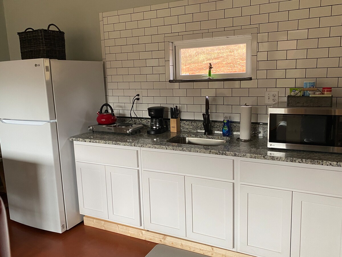Այս հարմարավետ տնակը լեռնագագաթ է, որտեղից բացվում են տեղական հովիտների և լեռնաշղթաների գեղեցիկ տեսարաններ ։ Այն տեղավորում է մինչև 4 հյուր: Մեր 10' x 40" տախտակամածի վրա կարող եք վայելել արևածագը ՝ ճոճաթոռին դրված սուրճով, հանգստանալ կեսօրից հետո, երեկոյան պատրաստել և բազմաթիվ մոտակա արահետներով, այդ թվում ՝ Ապալաչյան արահետով արշավելուց հետո ջակուզիից նայել աստղերին ։