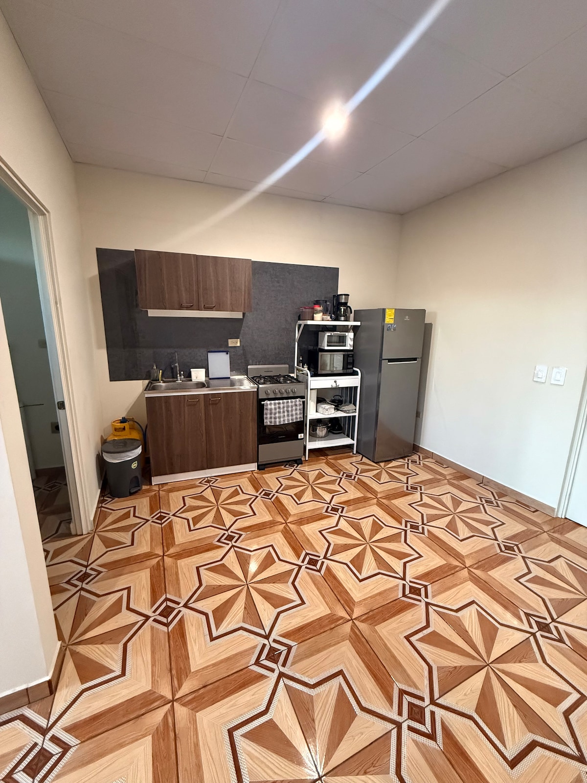 Հարմարավետ ԱՌԱՆՁԻՆ մինի բնակարան ՝ 1 մահճակալով, որը գտնվում է Սան Սալվադորի կենտրոնական, մասնավոր, հանգիստ և անվտանգ բնակելի տարածքում ։ Սեփական լոգասենյակ, սենյակի ճոպանուղի, Wi - Fi, Սմարթ հեռուստացույց Netflix - ով, պահարան, սառնարան, 1 բացօթյա կայանատեղի և այլն ։ Տարածքը գտնվում է Cuscatlán մարզադաշտի մոտ և 10 րոպե առևտրի կենտրոններից, ինչպիսիք են La Gran Vía - ն, Multiplaza - ն, El Salvador - ը, և 5 րոպե Starbucks - ից, ռեստորաններից, դեղատներից և այլն: