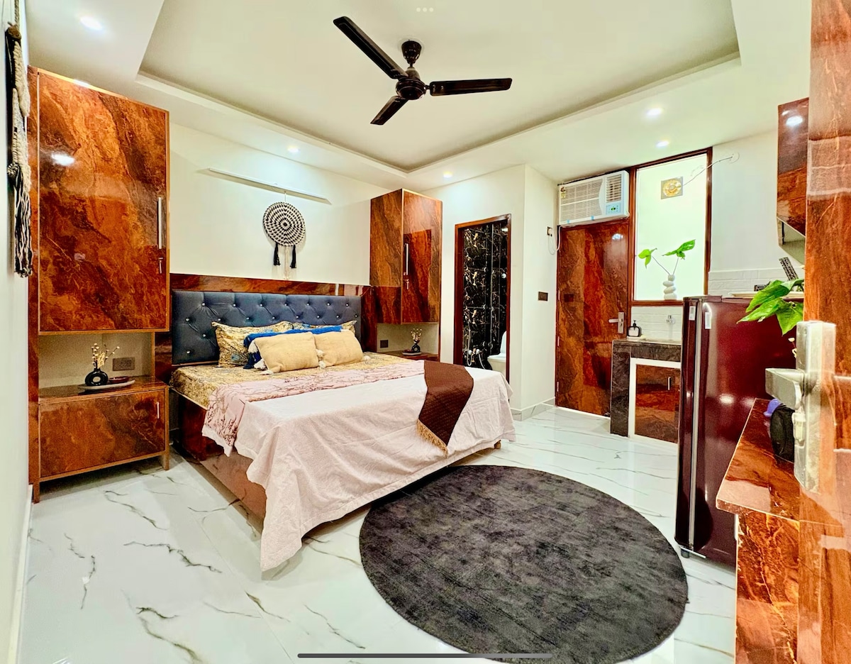 🚨SEASON SALE IS LIVE🚨 ‼️Message Host and get a deal‼️ Once you book this newly built RK haven, it's fully yours. No Sharing, No restrictions, No compromises. This bright and stylish studio offers everything you need for a comfortable stayplush bedding, a well-equipped kitchenette, and a peaceful vibe throughout The real highlight? An attached terrace! Whether you're enjoying your morning coffee or winding down with a glass of wine under the stars, it's the perfect spot to relax and recharge