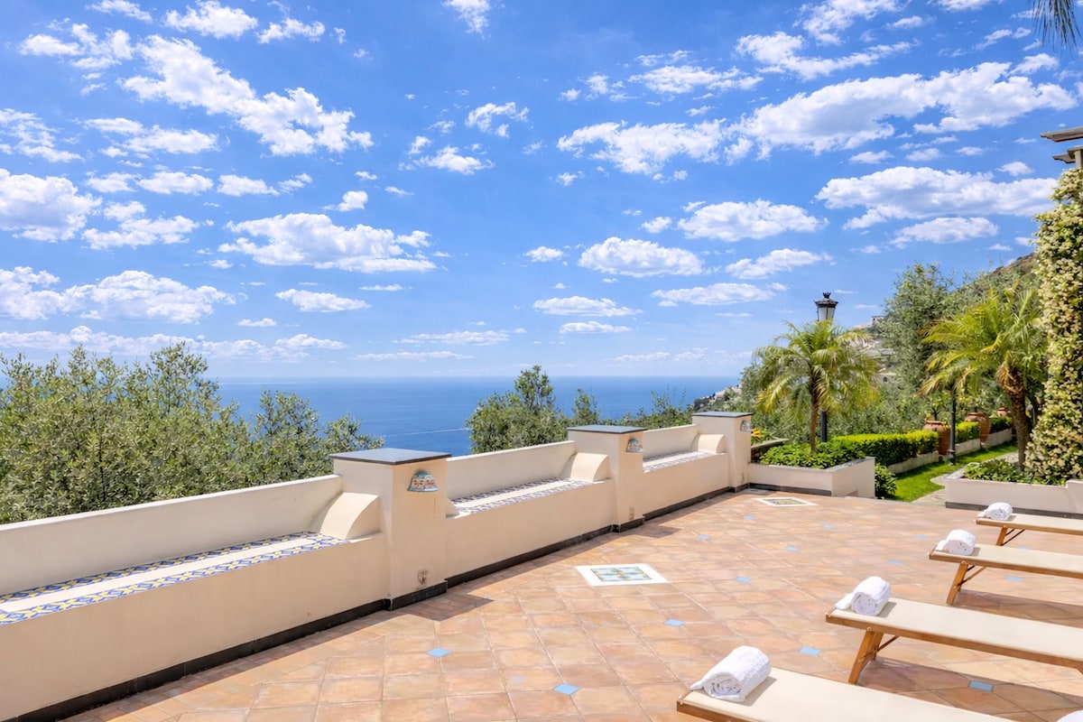 Վիլլան գտնվում է ծովի ափին ՝ շրջապատված կիտրոնի և նարնջագույն ծառերի այգիներով: Տեռասից բացվում է հրաշալի տեսարան, որը ներառում է Ամալֆիի ծովածոցը ՝ Կապո Վետիցայից մինչև Կապո դ'Օրսո, պատմական կենտրոն և Ամալֆիի տաճար և հակառակ ափամերձ գոտի ՝ Սալեռնոյից մինչև Կապո Լիկոսա ։ Տեռասի մի մասի մեկուսացման շնորհիվ հնարավոր է արևայրուք ընդունել բացարձակ գաղտնիության պայմաններում: 350 մ բարձրության վրա Ակումբի լողավազանը/ռեստորանը հասանելի է միայն հյուրերի համար նախատեսված «Մուտք» բաժնում նշված պայմաններով