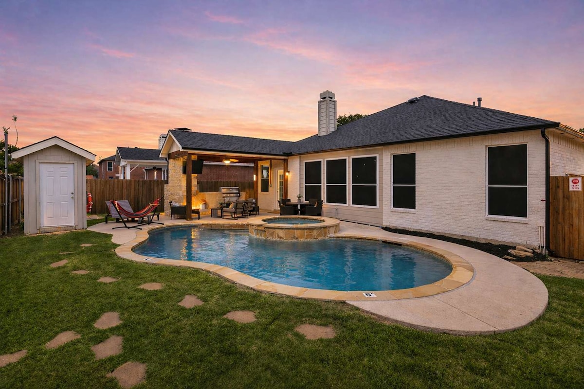 Զգացեք վերջնական հանգիստը Oasis Pointe - ում: Այս 6 ննջասենյակով տունը հյուրընկալում է 14 հյուրի ՝ 2 մեծ ննջասենյակով, 4 մեծ ննջասենյակով, 4,5 լոգասենյակով, ջեռուցվող լողավազանով, ջակուզիով և խաղասենյակով ։ Հարմարավետորեն գտնվում է Ֆրիսկոյի, Պլանոյի և DFW օդանավակայանի մոտակայքում ։ Այցելեք 5 գիշեր կամ ավելի երկար ՝ երկարաժամկետ այցի համար զեղչ ստանալու համար ։ Աչքի անցկացրեք մեր մյուս մոտակա հայտարարությունները http://www.airbnb.com/p/jamieandttx կայքում, եթե դա այնքան էլ այն չէ, ինչ փնտրում եք: Մենք ունենք մոտակայքում գտնվող բազմաթիվ այլ տարբերակներ, այդ թվում ՝ ընդամենը 5 րոպե հեռավորության վրա ։