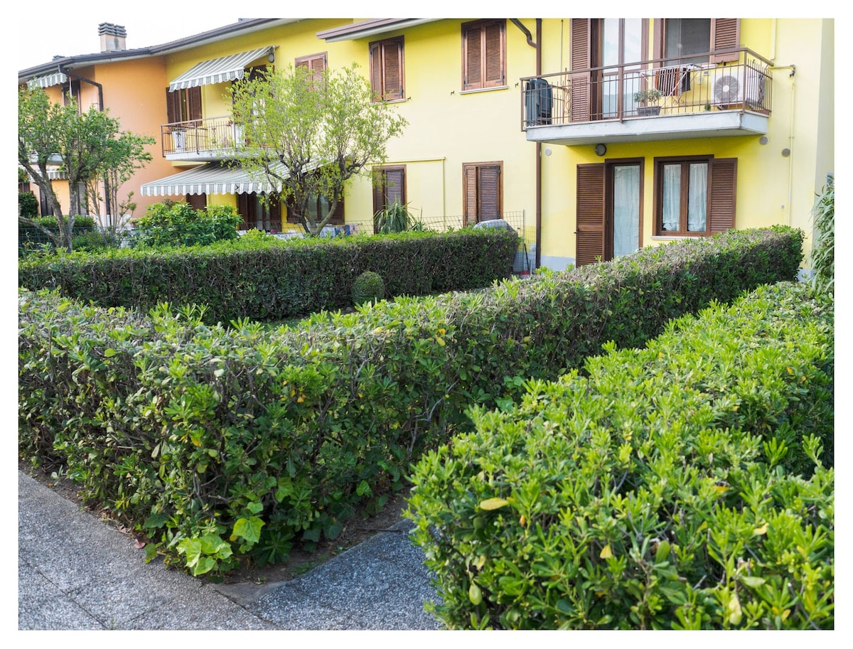 Garda Tranquil Escape - perfect place for autumn and winter holidays, a cozy retreat just a 10-minute walk from Lake Garda, lovingly created by us! Discover this charming apartment in a condo with a swimming pool and private gardens. It’s conveniently located close to Lake Garda, a children’s playground, and a supermarket. You’ll have easy access to the historical centers of Desenzano and Sirmione (12’ by car). Enjoy free parking (indoor and outdoor), with bus stops just 5’ away