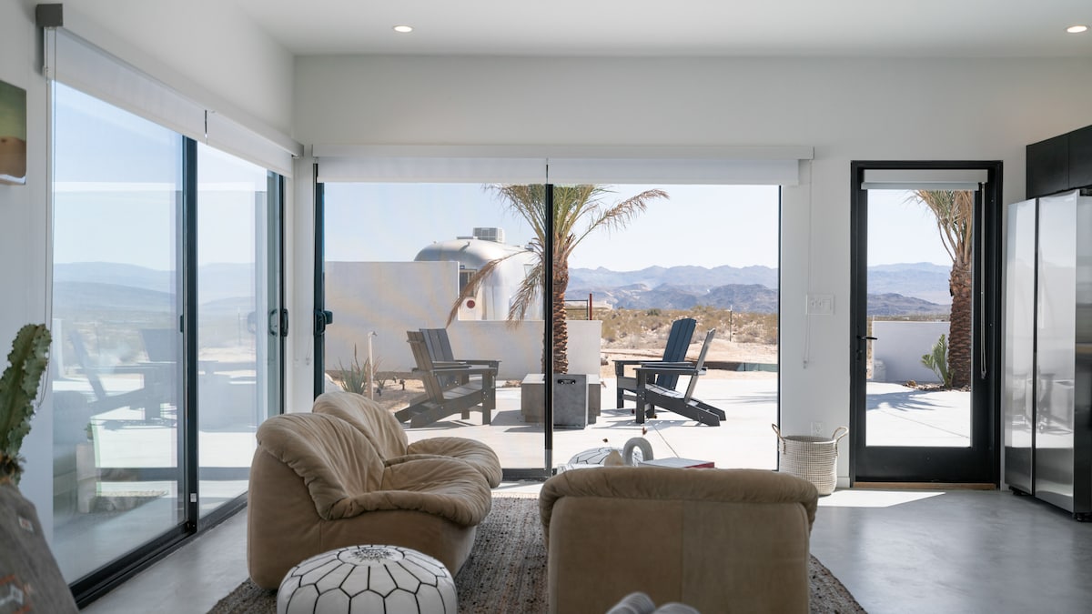 Արթնացեք համայնապատկերային անապատային երկնքում ՝ Ջոշուա Թրի ազգային պարկից ընդամենը 10 րոպե հեռավորության վրա ։ 1 ննջասենյակով այս նորաոճ հանգիստը կատարյալ է զույգերի, հեռավար աշխատողների և աստղագուշակների համար ՝ առանձին ջակուզիով, հարմարավետ կրակակետով և բոցավառվող արագ Wi - Fi - ով ։ Անցկացրեք ձեր օրերը ՝ ուսումնասիրելով զբոսայգին, վերադարձեք հանգստանալու ցանցաճոճում, թրջվեք աստղերի տակ կամ հավաքվեք կրակի շուրջ ։ Առավոտյան վայելեք լիովին կահավորված խոհանոցը և նախաճաշեք պերգոլայի տակ ՝ փայտե սեղանի շուրջ ։ Մեծ ցանկապատված բակ ՝ իդեալական տնային կենդանիների համար ։