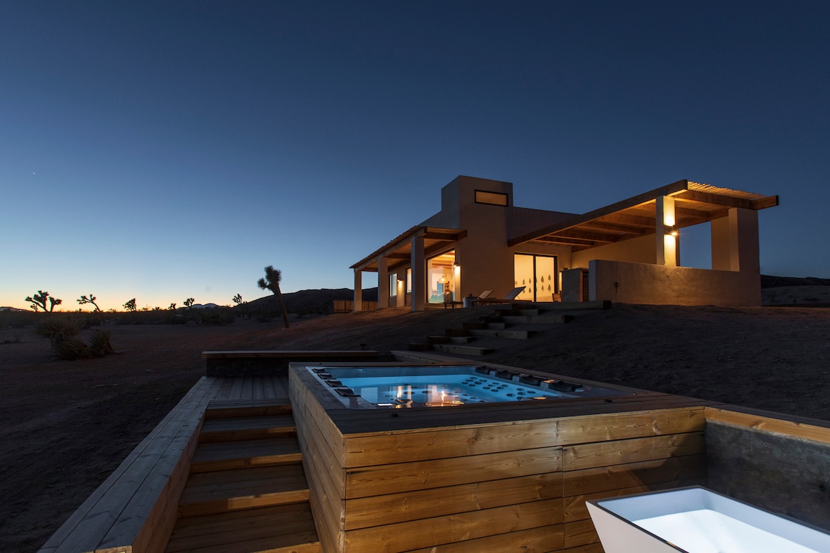 Սպա թեմատիկ անհատականացված կալվածք 30 ակր մակերեսով ՝ Ջոշուա Թրի կենտրոնից ընդամենը 4 մղոն հեռավորության վրա ։ Ներկայացված է Travel + Leisure - ում, Domino - ում, San Diego Mag - ում և այլն ։ Առանց անմիջական հարևանների ՝ դուք իսկապես կարող եք հանգստանալ ։ Նայեք հսկա պատուհաններին դեպի 100 - ից ավելի Ջոշուա ծառեր և ազգային պարկ ։ Հարմարությունները ներառում են բոլորովին նոր լողավազան և արևի տախտակամած, մեծ անհատականացված սաունա, սառը ջրասուզակ, 8 հոգանոց ջակուզի, առանձին յոգայի / խմբի ճաշասենյակ, բացօթյա ցնցուղ, շեֆ - խոհարարի խոհանոց, էլեկտրամոբիլի լիցքավորիչ, առանց ծխի բուխարի և մասնավոր սկավառակային գոլֆի դաշտ ։