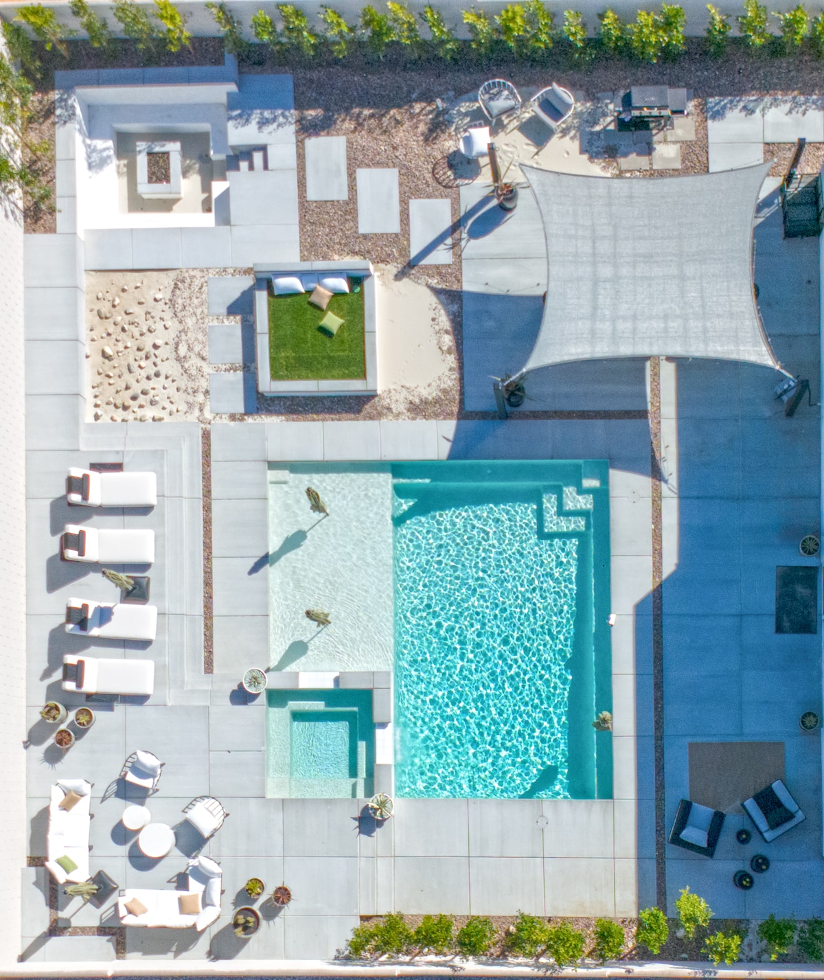 Escape to this stunning desert retreat, designed to offer the ultimate in comfort and style. Nestled amidst breathtaking desert landscapes, this modern oasis is perfect for those seeking a luxurious vacation. In your private backyard oasis, you'll find a sparkling swimming pool, a relaxing hot tub, and shaded patio areas perfect for lounging and enjoying the sunshine. For those who enjoy a bit of friendly competition, the backyard also features a putting green, cornhole and a pickleball court.