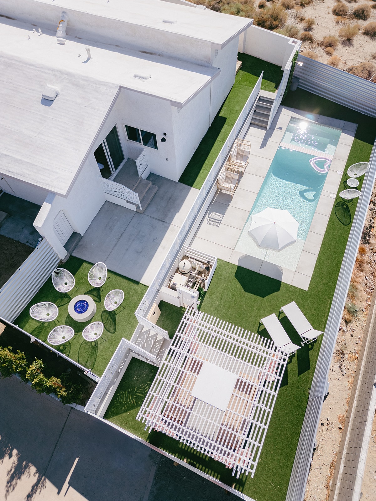 Pigment Palms, your IG-worthy vacation home. Ideal for bachelorette groups, family & friends, or romantic stays. This trendy resort blends Palm Springs and 2000's aesthetics, for a fun yet dreamy atmosphere. Swim in our pink tiled pool, relax in the 10 person hot-tub, or catch a golden hour light show from our disco ball in the pool cabana. Cook at the outdoor kitchen, take in the sunsets & starry skies by the outdoor fire-pit, enjoy an outdoor shower, or a movie night by the indoor fireplace.