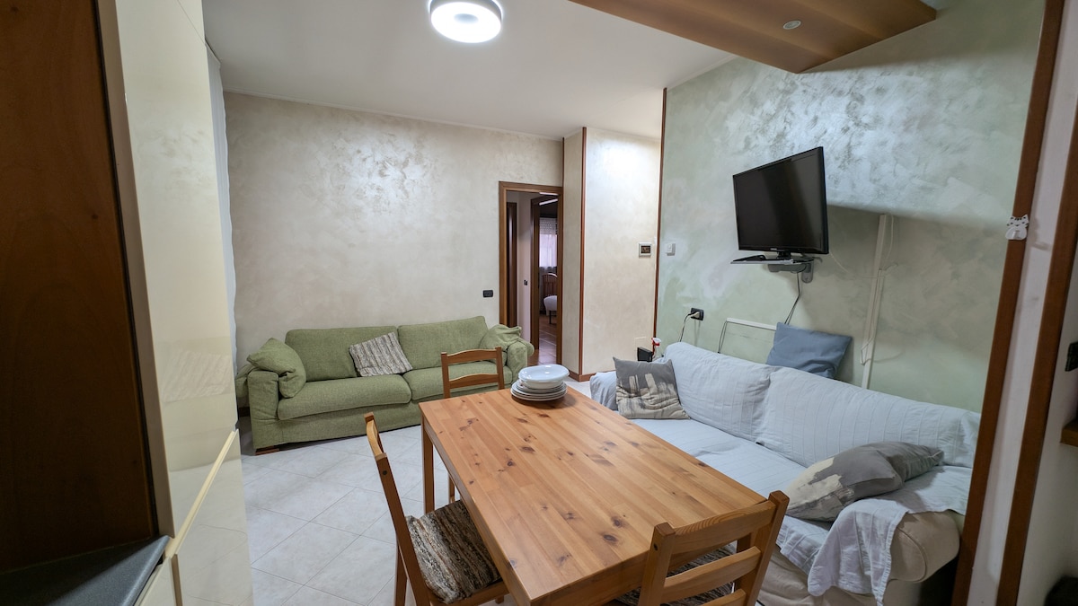 Ընդարձակ և լուսավոր բնակարան քաղաքի կենտրոնում, խոհանոց և կահավորված, մեծ պատշգամբ ՝ սուրճի սեղանով և աթոռներով, լոգասենյակ ՝ լոգարանով, ցնցուղով և լվացքի մեքենայով ։ Օդորակիչ ամբողջ տանը ։ Խանութներին, սուպերմարկետներին և երկաթուղային կայարանին շատ մոտ ՝ 800 մետր բարձրության վրա ։ Լավ կապված է ճանապարհներով և հասարակական տրանսպորտով դեպի Միլան, Կոմո լիճ և Ֆիերա դի Ռո Պերո ։ Անվճար և վճարովի կայանում փողոցում ։