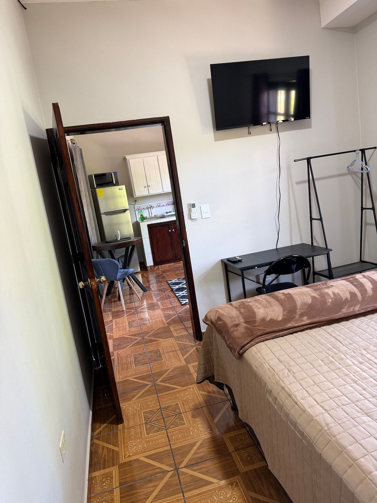 Հարմարավետ մասնավոր ստուդիա, իդեալական է հարմարավետ և գործնական այցերի համար ։ Տարածքում կա երկտեղանի մահճակալ, որը կատարյալ է հանգստի և հանգստի համար ։ Խոհանոցիկը լիովին կահավորված է ձեր կերակուրները պատրաստելու համար, իսկ առանձին լոգասենյակը ներառում է տաք ջուր ՝ լրացուցիչ հարմարության համար: Բացի այդ, այն առաջարկում է կայանատեղի ձեր հարմարության համար ՝ ապահովելով առանց անհանգստության այց ։ Ամեն ինչ նախատեսված է հարմարավետություն և գաղտնիություն ապահովելու համար ։ Մենք Պալմերոլա XPL միջազգային օդանավակայանից ընդամենը 6 կմ հեռավորության վրա ենք ։