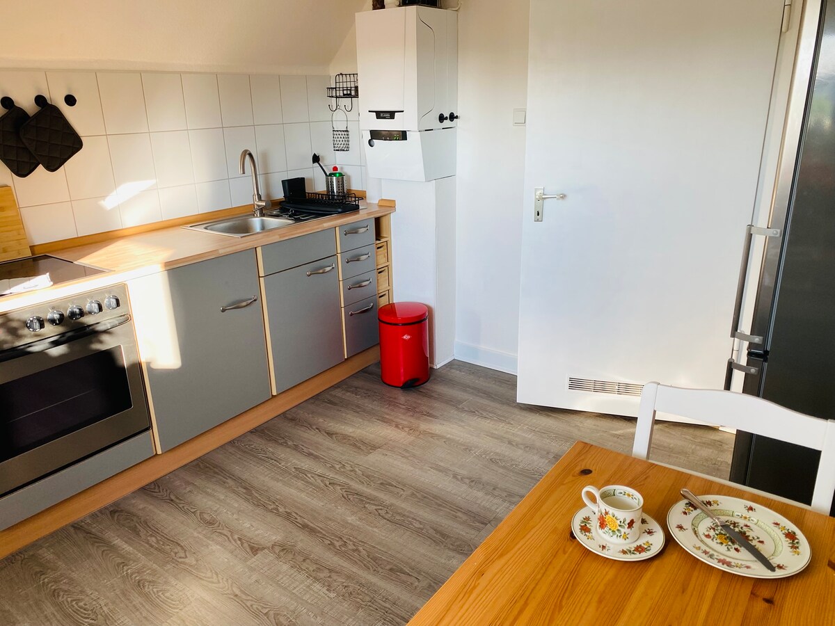 Մեր 40 քմ մակերեսով բնակարանը գտնվում է Բիլեֆելդ Բրեքվեդե թաղամասում ։ Բնակարանը գտնվում է առանձնացված տանը ՝ սեփական մուտքով ։ Անվճար կայանատեղի փողոցում ։ S - Bahn - ին և ավտոբուսի կանգառին կարելի է հասնել 3 րոպեում ՝ ոտքով ։ Տրամվայը 15 րոպե է տևում մինչև Բիլեֆելդ Սիթի ։ Լավ կապ A2 - ի և A33 - ի հետ ։ Ընդամենը մի քանի րոպե ոտքով կարող եք վայելել Տեուտոբուրգի անտառը: Սրճարանը, կրպակը և գնումները մոտակայքում են ։