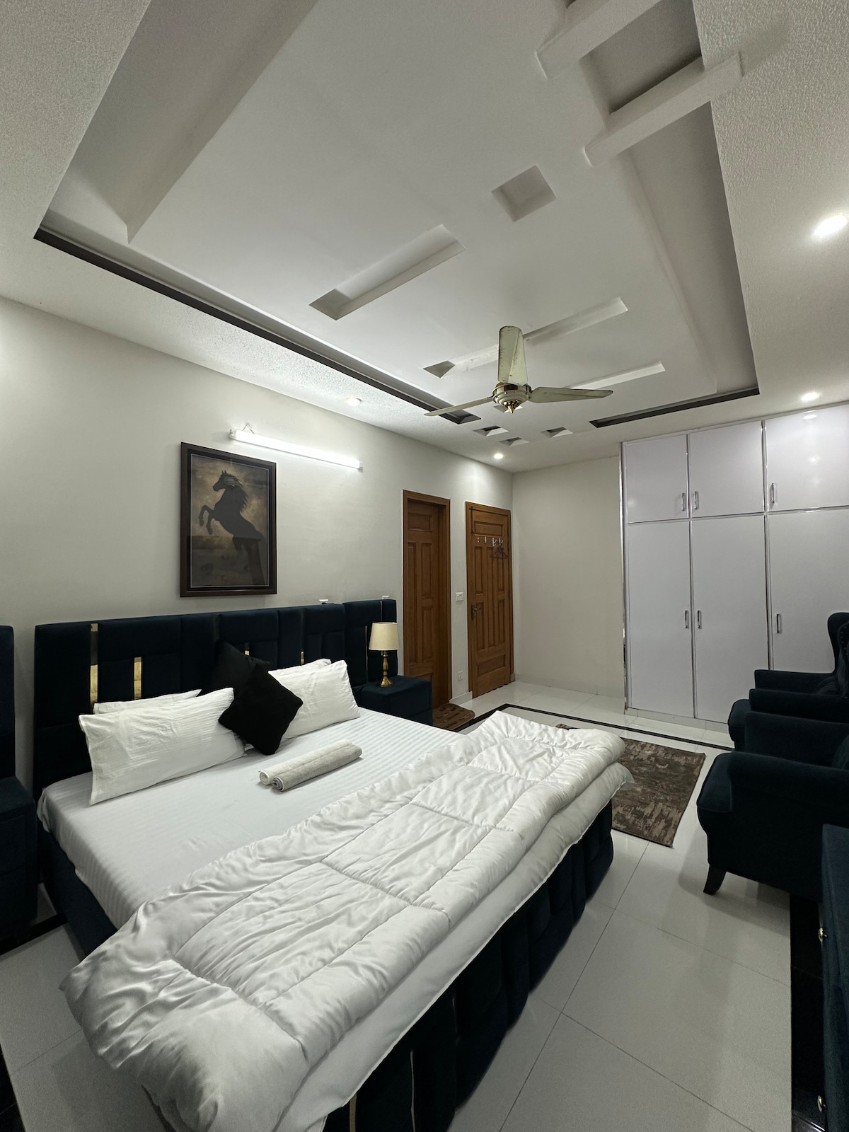Ժամանակակից 3 սենյականոց բնակարան Բահրիա Թաունի 8-րդ փուլում, բուտիկ-հյուրանոցի տեսքով։ Ինքներդ ձեզ կզգաք ինչպես տանը՝ ժամանակակից հարմարավետությամբ և 5 ⭐️ հյուրանոցի հարմարավետությամբ։ 🛌 Յուրաքանչյուր ննջասենյակ ունի մեծ երկտեղանի մահճակալ, մասնավոր ժամանակակից լոգասենյակ, ինվերտեր օդորակիչ, 55 դյույմ անկյունագծով սմարթ հեռուստացույց՝ Netflix և այլ հոսքային հավելվածներով։ 💠 Վայելեք գերարագ Wi-Fi, ըստ պահանջի՝ անվճար նախաճաշ, լիովին կահավորված խոհանոց, լվացքասենյակ և շուրջօրյա տաք ջուր։ Անվտանգ, փակ համայնք՝ տեսահսկման համակարգով, արտաքին էլեկտրական ցանկապատով, շուրջօրյա օգնականով և անվճար կայանատեղով։