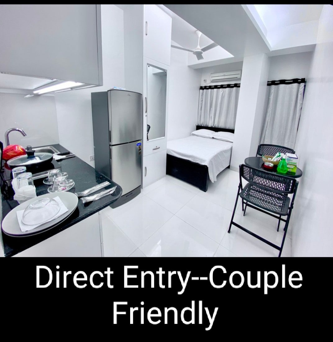 Nest Residence, A cozy rooftop studio in Panthapath, Dhaka, 200m from Bashundhara City, 300m from Dhanmondi Lake, 200m from Square Hospital, 250m from metro. Ideal for solo travelers or couples, it has a king-size bed, dual AC, Wi-Fi, Netflix TV, soundproofing, and kitchenette. Compact bathroom is spotless. Enjoy a rooftop garden, gym, BBQ. Elevator to 9th floor + 1 staircase. Power backup ensures comfort. Min 1-night stay, no parties. Free weekly cleaning for more than a week stay.