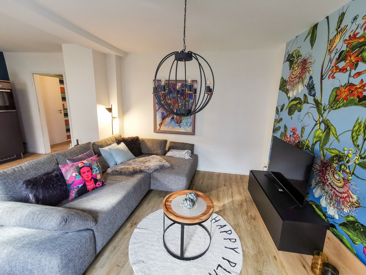 Ժամանակակից, նոր վերանորոգված 62 քմ մակերեսով բնակարան Մյուլլեքերում, իդեալական է մինչև 4 -5 հյուրի համար (5 հոգու համար 2 հոգի քնում են թախտին, խնդրում ենք հայտ ներկայացնել )։ 3 սենյակ, բոլորովին նոր խոհանոց, բարձրորակ հարմարություններ և անվճար հիմնական պարագաներ, ինչպիսիք են համեմունքները և թեյը: Բաց հատակագծով բնակելի ճաշասենյակն առաջարկում է ծալվող բազմոց, սմարթ հեռուստացույց և խաղեր ։ Մանկական օրորոցը հասանելի է ըստ պահանջի ։ Շոփինգի, երկաթուղային կայարանի և անտառի մոտակայքում ։ Կատարյալ է ընտանիքների, զույգերի և բնության սիրահարների համար ։