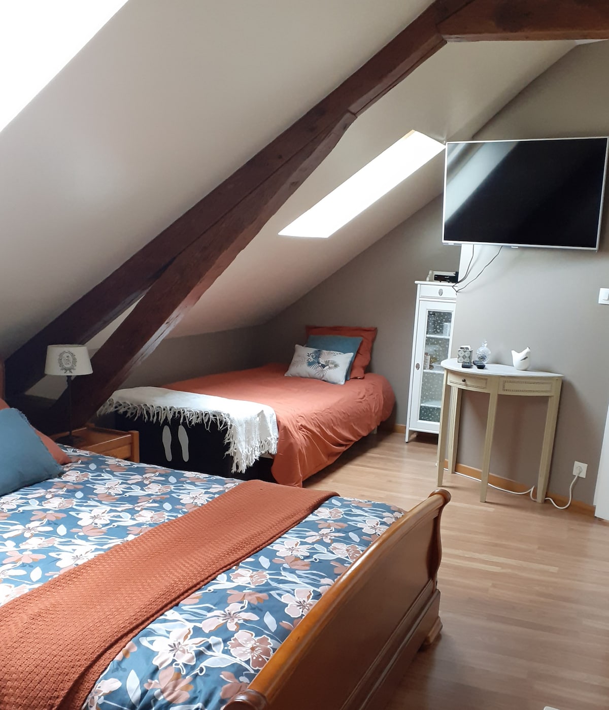 3 չարդախի ննջասենյակ ավանդական տեղական ագարակի վերին հարկում, որոնք վերականգնվել են՝ պահպանելով դրանց ինքնատիպ բնույթը (1 երեքտեղանի ննջասենյակ՝ 160 սմ մահճակալով + 90 սմ մահճակալով, 1 երկտեղանի ննջասենյակ՝ 140 սմ մահճակալով, 1 չորստեղանի ննջասենյակ՝ 160 սմ մահճակալով և 2 90 սմ մահճակալով) 1 երկտեղանի ննջասենյակ (160 մահճակալ) առաջին հարկում ՝ լոգասենյակով Գտնվելու վայրը՝ Վյուլ-լե-Ռոզից և Սեն-Վալերի-ան-Կոյից 5 րոպե հեռավորության վրա Ընդհանուր առմամբ ՝ 3 լոգասենյակ և 3 զուգարան Դիեպեից 30 րոպե հեռավորության վրա 40 րոպե Էտրետայից