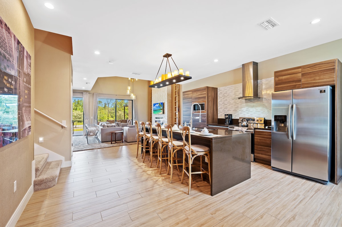 - Զբաղվեք Կենտրոնական Ֆլորիդայի շքեղությամբ ՝ Սոլարա հանգստավայրում այս գեղեցիկ ձևավորված թաունհաուսի միջոցով: - Ներկայացնում ենք 5 ննջասենյակ, առաջարկում ենք առանձին լողավազան, գերարագ ինտերնետ, Սմարթ հեռուստացույցներ և բացօթյա ճաշկերույթներ ձեր մասնավոր պատիոյում ՝ հանգստի համար: - Magic Kingdom - ից, Universal Studios - ից և խոշոր տեսարժան վայրերից ընդամենը մի քանի րոպե հեռավորության վրա գտնվող այս թաունհաուսը կատարյալ հանգիստ է: - Լիակատար մուտք դեպի հանգստավայրի անհավանական ֆիթնես կենտրոն, լողավազանի մոտ գտնվող բար և անվճար կայանատեղի: Դուք պատրաստ եք անմոռանալի զվարճալի ժամանակների: