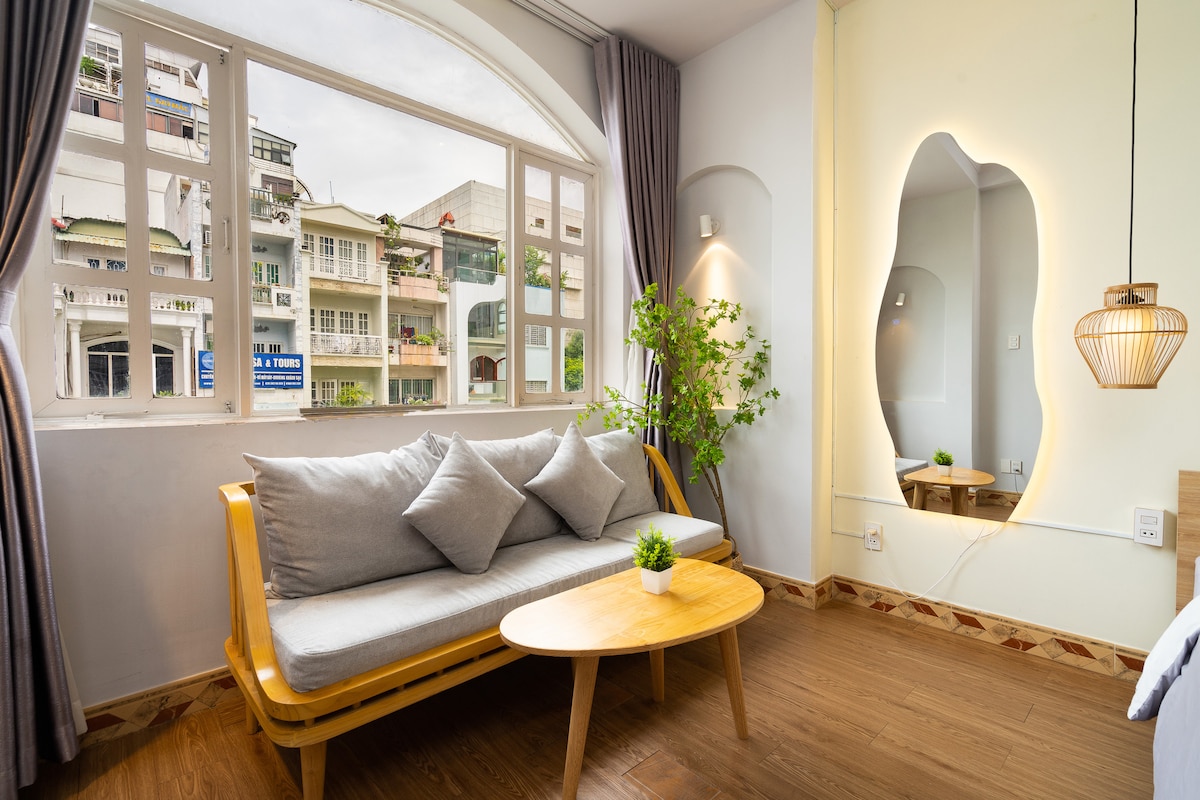 Մեր լուսավոր և ընդարձակ տարածքը գտնվում է 1 - ին թաղամասում ՝ HCMC - ի սրտում ։ - Առկա է վերելակ - ԳԵՂԵՑԻԿ ՍՏՈՒԴԻԱ ՝ լիովին ԿԱՀԱՎՈՐՎԱԾ ԽՈՀԱՆՈՑՈՎ և ՊԱՏՈՒՀԱՆՈՎ - ԱՌԱՆՁԻՆ ԼՈԳԱՍԵՆՅԱԿ - Սրբիչները ներառված են և փոխվում են ամեն օր ՝ անվճար ։ - ԱՆՎՃԱՐ Wi - Fi, ամենօրյա մաքրում ։