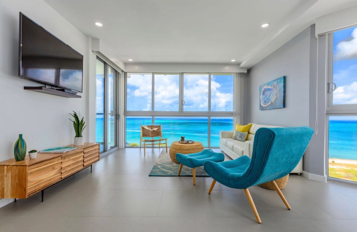 Օվկիանոսի գեղեցիկ տեսարանով կոնդոմինիում մասնավոր բոլորովին նոր Azure Residencies - ի 6 - րդ հարկում ։ Էկո - կենդանի ոգեշնչված դիզայն ։ Գտնվում է Արուբայի ամենագեղեցիկ լողափում ՝ Էգլ Բիչում ։ Տպավորիչ տեսարան դեպի օվկիանոս ՝ հյուրասենյակից, գլխավոր ննջասենյակից և ընդարձակ պատշգամբից ։ Azure Residencies - ում կան երկու անեզր լողավազաններ, ջակուզի, խաղասենյակներ, ռեստորան, խանութներ, լիովին կահավորված մարզասրահ և դռնապան, որը կօգնի ձեր այցին: 5 րոպե ոտքով դեպի Էգլ Բիչ և 10 րոպե ոտքով դեպի Փալմ Բիչ: Մաքուր կախարդանք: