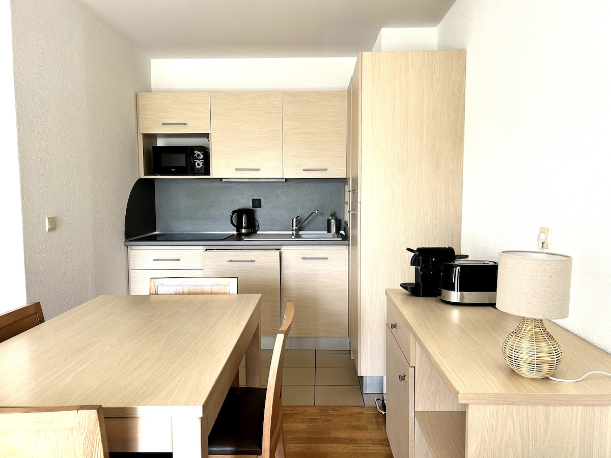 Իդեալական է Դիվոնի կենտրոնում ՝ ռեստորաններից, խանութներից, լճից և ավտոբուսներից մինչև Կոպպետ և Նյոն ոտքով 2 րոպե հեռավորության վրա, այս լիովին վերանորոգված 45 քմ մակերեսով բնակարանը ձեզ ընդունում է անկախ մուտքով առանձնացված տանը: Լուսավոր և ժամանակակից ՝ այն առաջարկում է ընդարձակ հյուրասենյակ ՝ կահավորված խոհանոցով (ամանալվաց մեքենայով), հարմարավետ ննջասենյակով և ցնցուղի սենյակով ։ Հիանալի է բնության և հարմարությունների միջև հաճելի հանգստի համար ։ Տրամադրվում են սպիտակեղեն և սրբիչներ ։