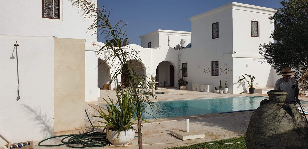 Entourée de palmiers, d'oliviers et bercée par le soleil, Essskifa est une invitation au dépaysement. Cet havre de paix est situé dans une zone classée patrimoine mondial de l'UNESCO et est érigé sur une propriété de 4000m2, à 5 minutes des plus belles plages de l'île. Composé de 2 dars reliées par une galerie notre houch allie authenticité de la région et confort.
