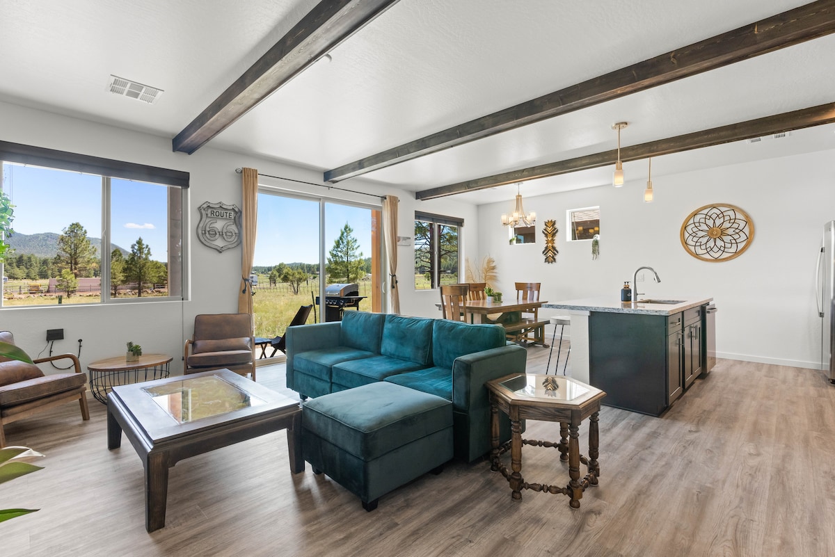 Զվարճացեք այս հանգիստ երկրի քոթեջում ։ Կառուցվելով 2023 թվականին ՝ այն գտնվում է 10 հեկտար տարածության վրա, և մենք ՝ հյուրընկալողներս, ապրում ենք տեղում ՝ մոտ 150 ֆուտ հեռավորության վրա գտնվող առանձին տանը ։ Մենք չունենք տնային կենդանիների կամ մաքրման վճարներ ։ Դուք կվայելեք հանգիստ շրջակայք ՝ մեծ երկինքներով և գեղեցիկ լեռնային տեսարաններով ձեր առանձին տախտակամածից: Մենք գտնվում ենք Ուիլյամսից ընդամենը ութ մղոն դեպի հյուսիս և մոտ 1 կետ 5 մղոն հեռավորության վրա ՝ դեպի Մեծ կիրճ տանող մայրուղուց, բոլորը ՝ հարթ ճանապարհի վրա, և ընդամենը 45 րոպե ճանապարհ դեպի Հարավային դարպաս ՝ դեպի կիրճ ։
