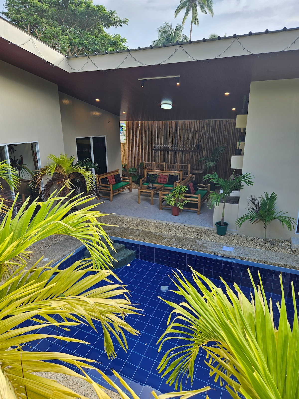 Welcome to Banyan Villa, a tranquil retreat strategically located just a 5-minute drive from the center and a short walk to Danao Beach, with restaurants and stores in the vicinity. Tailored for private getaways for couples or gatherings with family and friends, our villa features a private pool shaded by an ancient banyan tree, an open living area, a full kitchen, and the latest modern amenities. Surrounded by rare plants, it creates the perfect blend of comfort and natural serenity.