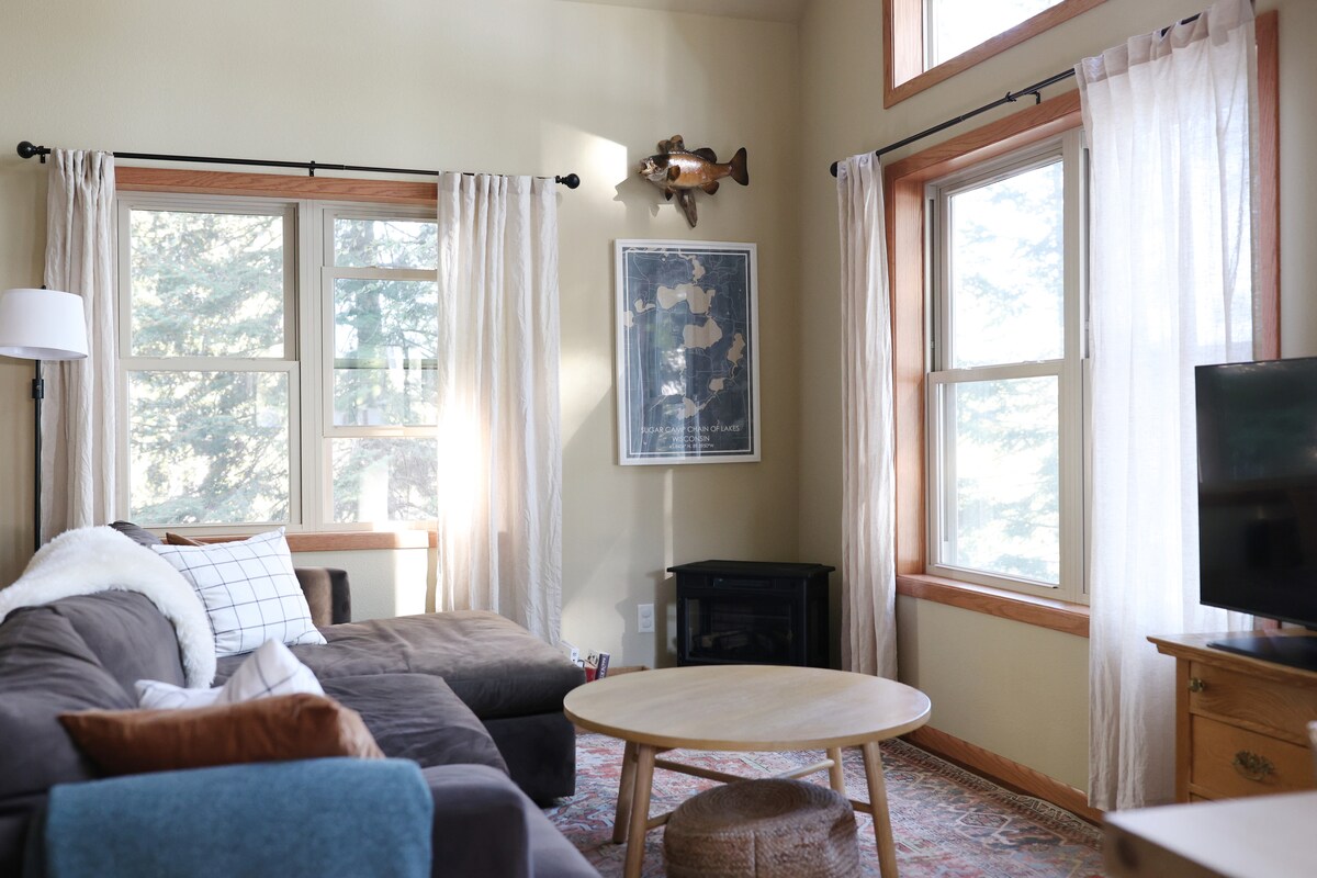 Հմայիչ և խաղաղ 2 սենյականի/1 լոգասենյակի տուն՝ ընդամենը մի քանի քայլ հեռավորության վրա լճից։ Կատարյալ է ընտանիքի և ընկերների, Նորթվուդսի բացօթյա հանգստի սիրահարների կամ հեռավար աշխատողների համար։ Հարմարավետորեն կարող է քնել 4 անձ։ Ներսում՝ ջերմ և բնական երանգներ ամբողջ տարածքում, լիովին կահավորված խոհանոց և գերարագ Wi-Fi։ Դրսում՝ մասնավոր հետնաբակի պատիո, բետոնե խարույկատեղ և գազի գրիլ։ Կայակներ, թիակներ և փրկարարական բաճկոններ կան նավամատույցի մոտակայքում։ Հանգստացեք, ուսումնասիրեք և ստեղծեք անմոռանալի հիշողություններ ձեր հանգստավայրում, որը ձեր երկրորդ տունն է։