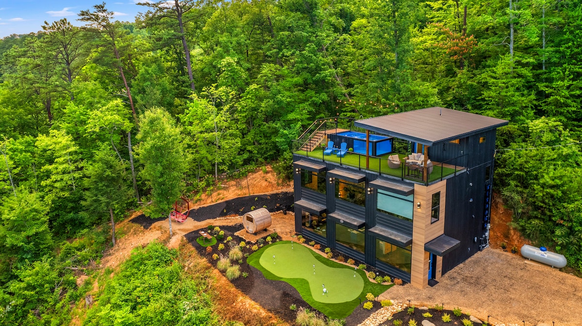 Ruby’s Cliffside is an amazing Studio (but with sleeping for 6 on 2 different levels), 2 Bath vacation home located at the top of Bluff Mountain. The views from this magnificent property are unlike any view in the entire area! Bring your binoculars to see Downtown Knoxville on a clear day from either of the home’s 2 spacious decks. Ruby’s Cliffside offers peace and serenity from the chaos of everyday life. The amenities of this home are just as unique as its architectural design.