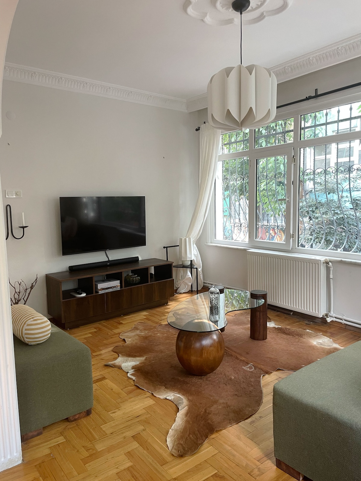 We enable easy self-check-in this apartment in Maçka, one of the most vibrant locations in Istanbul. The amount of natural light absorbed is incredible. Homies in this building are known for being commodious. Although it’s located in the center of the city where transportation to any place is very easy and fast, the surrounding trees and the courtyard in the back makes you feel like you’re also living in the nature. Enjoy watching Netflix after cooking your meal in the fully equipped kitchen