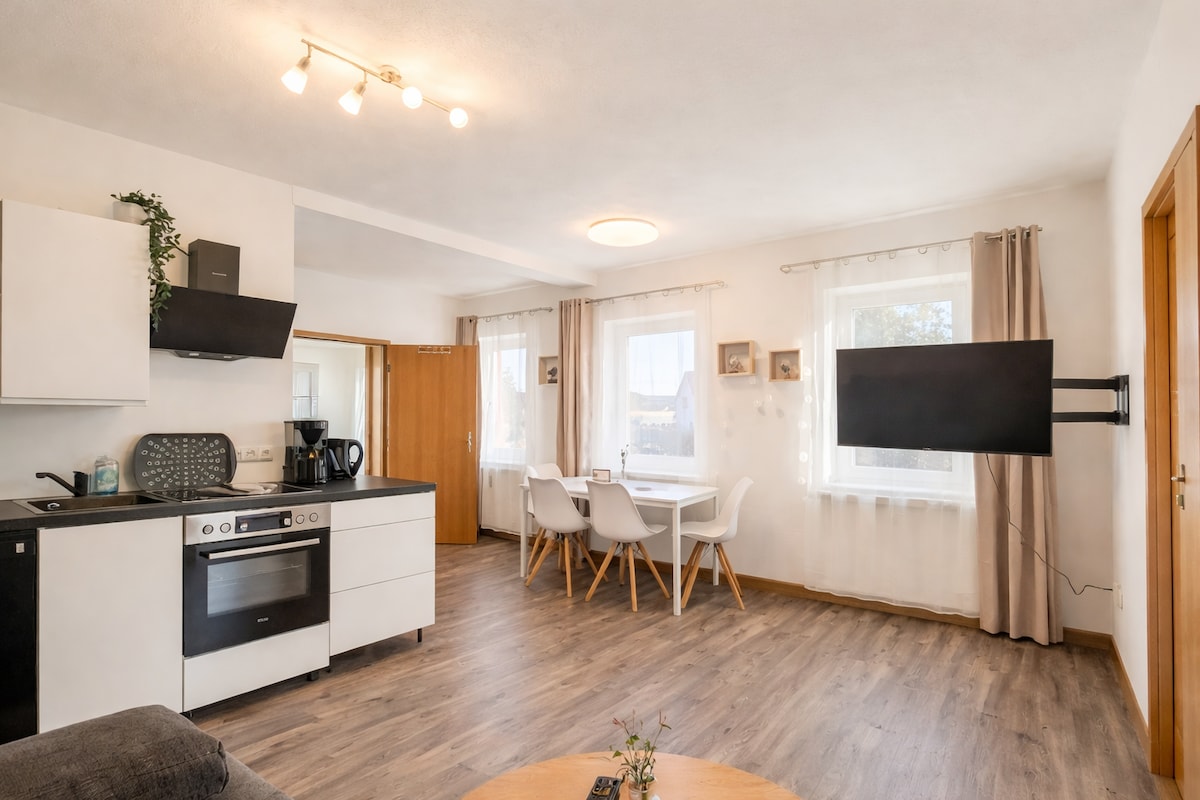 Willkommen in unserer neu renovierten Wohnung im Herzen von Sebnitz, direkt an der Grenze zu Tschechien und eingebettet in die malerische Landschaft der Sächsischen Schweiz. Unsere Wohnung befindet sich in einem charmanten Haus aus dem 19. Jahrhundert mit hohen Decken und dicken Wänden, die für Ruhe und Stille sorgen, weitab von Hauptverkehrswegen. Anfragen werden erst ab mindestens zwei Übernachtungen akzeptiert. Wir bitten um Ihr Verständnis.