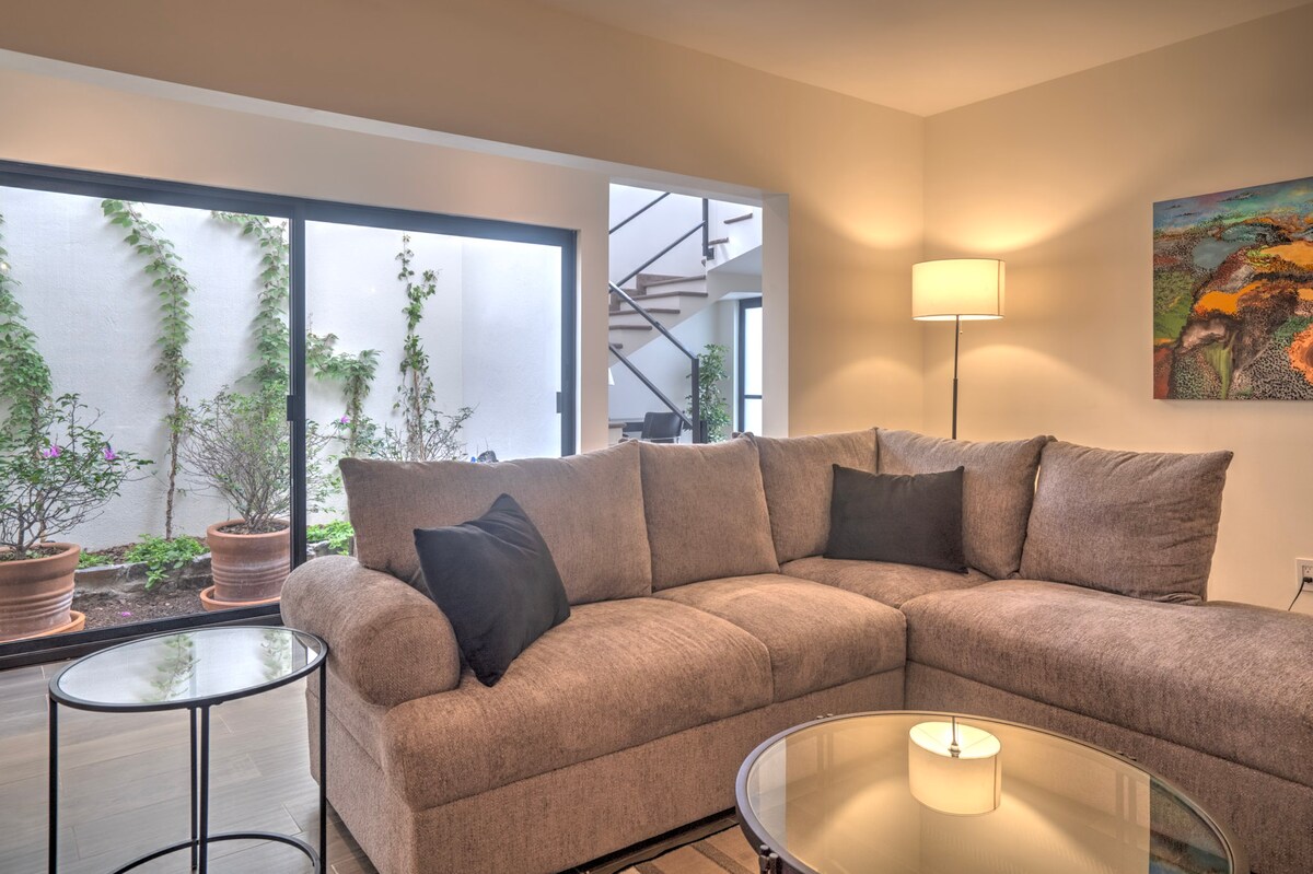 Այս նոր վերանորոգված 2 հարկանի առանձնատունը գտնվում է Կոլոնիա Սան Անտոնիոյում գտնվող խանութներից և ռեստորաններից ոտքով հեռավորության վրա ։ Դա նաև կարճ ճանապարհ է դեպի Սենտրո ՝ Սան Միգելի սրտի բաբախյունը ։ Այն ունի լավ տրամադրված խոհանոց ՝ առանձին ճաշասենյակով, ընդարձակ հյուրասենյակ ՝ բուխարիով և մեծ հեռուստացույցով, լրիվ չափի լվացքի մեքենա և չորանոց, երկու լավ դասավորված ննջասենյակ ՝ մեծ հեռուստացույցներով և որակյալ սրբիչներով ու սպիտակեղենով ։ Վայելեք եղանակային ճաշը կամ հանգիստը ձեր մասնավոր այգում կամ տանիքի տեռասում:
