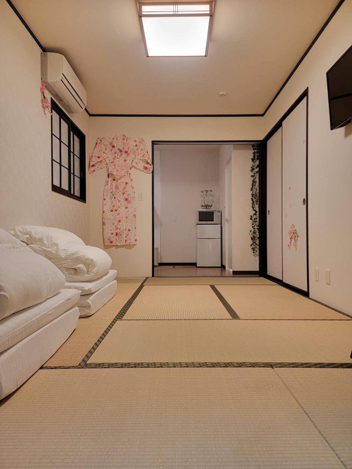 ■寝室 寝室は1つです。 ※部屋にはベッド、ソファベッドを設置しています。 ■キッチン 基本的な調理器具や食器、電子レンジ、オーブントースター、コンロ、電気ポット、炊飯器、冷蔵庫まで一式を揃えています。 ■室内の備品はすべて自由に利用可能 日常生活に必要なものは、ほぼ全てご用意しております。 ※備品の持ち帰りは厳禁です。 ■浴室シャワー、トイレは全て別です。 浴室にはボディーソープ、シャンプー、リンス、ドライヤーなどのアメニティーをご用意しています。 洗濯機と洗剤もご使用可能ですので、コインランドリーに行く必要はありません。 ■無料Wi-Fi 宿泊中は無線Wi-Fiの利用は無料です。 ※備え付けのWi-Fiなので、持ち出しはできません。 🔳Blu-rayプレーヤー お気に入りの映画鑑賞を。 ■無料自転車2台🚲 ■フロント フロントはありません。セルフチェックインの施設です。 ※ご不明点などがあればホストに連絡してください。