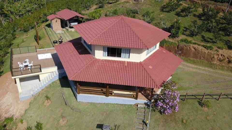 Casa de campo localizada na rota dos Ipês, próxima ao centro de Domingos Martins. São cerca de 10.000 m2 com área de lazer exclusiva, salão de festas, churrasqueira, forno à lenha, piscina, sinuca, barras, playground, pomar com inúmeras espécies de árvores frutíferas, galinheiro e tanque de peixes. As araucárias e demais árvores e plantas atraem inúmeras espécies de pássaros que tornam a estadia mais atraente. Seja no calor do verão ou no frio do inverno, venha descansar com família e amigos!