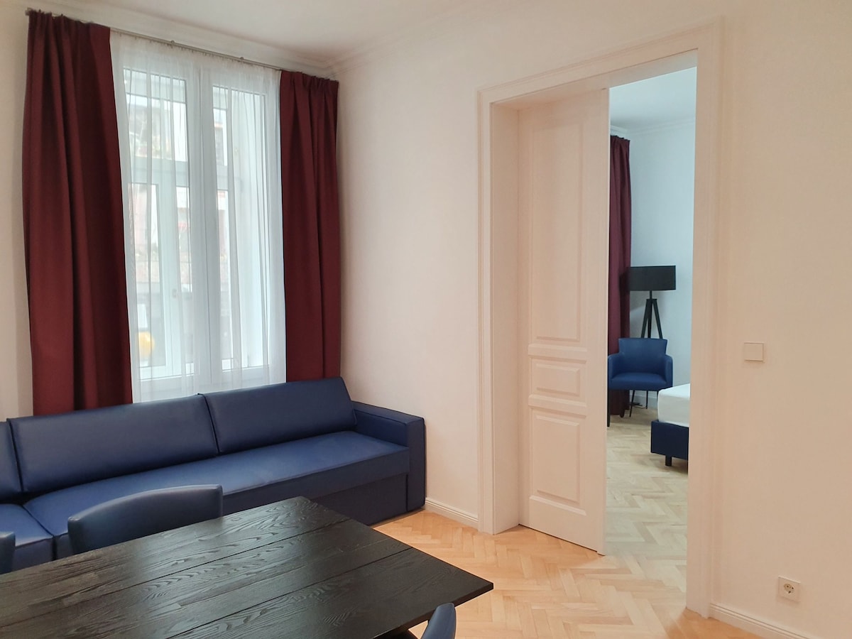 Պատրա ՞ ստ եք մնալու ձեր նոր սիրած տանը ։ Այնուհետև այցելեք մեր սիրով կահավորված, բոլորովին նոր բնակարանը Վիեննայի ամենահիասքանչ տարածքում ՝ շրջապատված դիզայնի գերժամանակակից խանութներով և կոնցեպտային խանութներով (մի մոռացեք վարկային քարտի մասին), արվեստի թանգարաններով և պատկերասրահներով, ինչպես նաև բարերով և ռեստորաններով: Կենտրոնը գտնվում է Վիեննայում, հեշտությամբ հասանելի է հանրությանը և գտնվում է քաղաքի կենտրոնից ոտքով հեռավորության վրա ։ Ինչպես փոքրիկ բուտիկ - հյուրանոց ՝ զարդարված վինտաժով և արվեստով ։