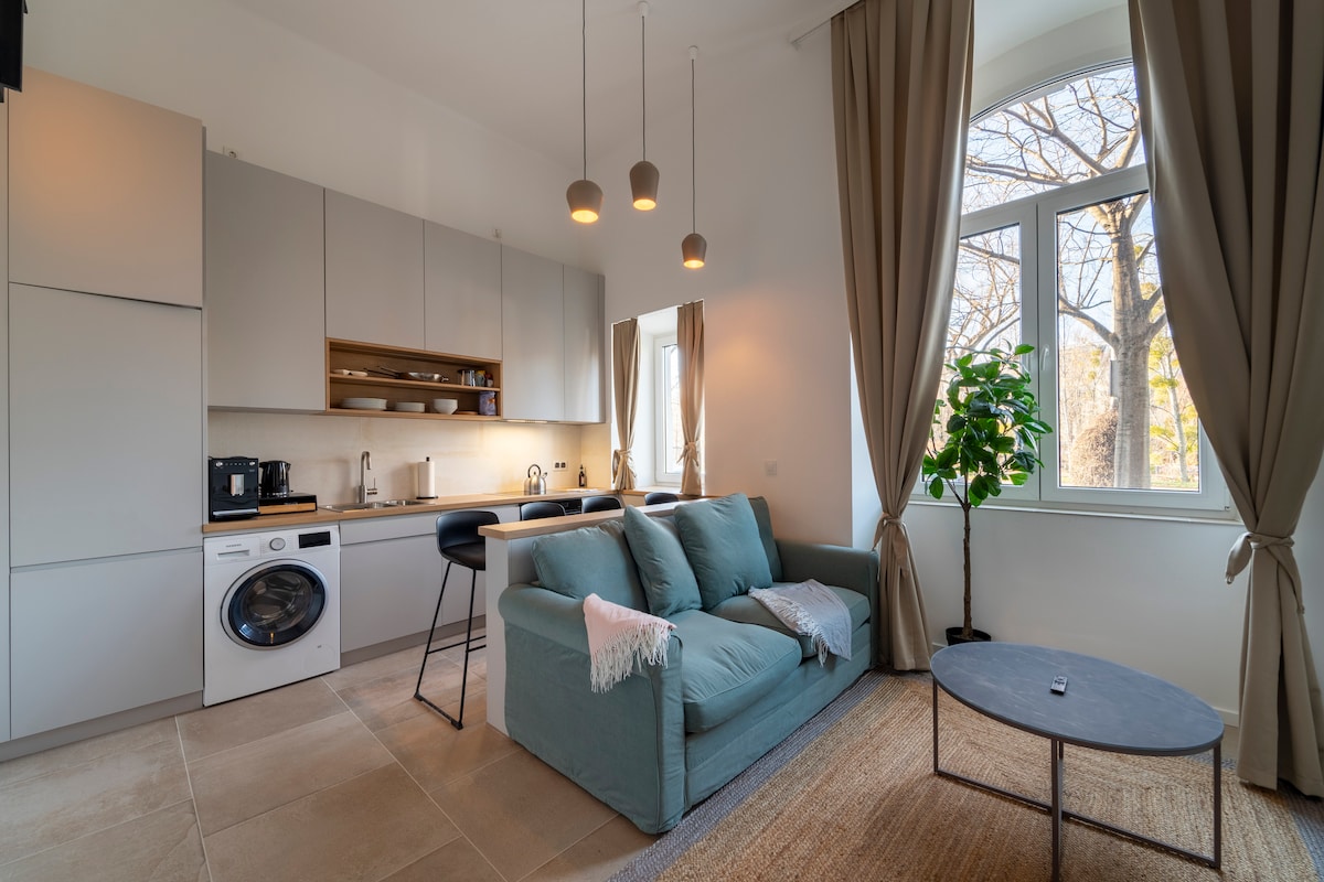 Մտեք այս նորաոճ, ժամանակակից մեկ ննջասենյակով բնակարանը ՝ Վիեննայի կենտրոնում գտնվող պրեմիում հարմարություններով ։ Վայելեք լիովին կահավորված խոհանոց, հարմարավետ բնակելի տարածք ՝ փոխարկելի բազմոցով, և ննջասենյակ ՝ մեծ մահճակալով, բավականաչափ պահեստով և լվացքի մեքենայով ։ Այս բնակարանը միավորում է հարմարավետությունն ու ֆունկցիոնալությունը պատմական շենքում ՝ վերելակով ։ 150 ✔ -179 սմ մահճակալ ✔ Բազմոց - մահճակալ ✔ Լիովին կահավորված խոհանոց ✔ Բարձր արագությամբ Wi - Fi ✔ Օդորակում Կարդալ ավելին ↓