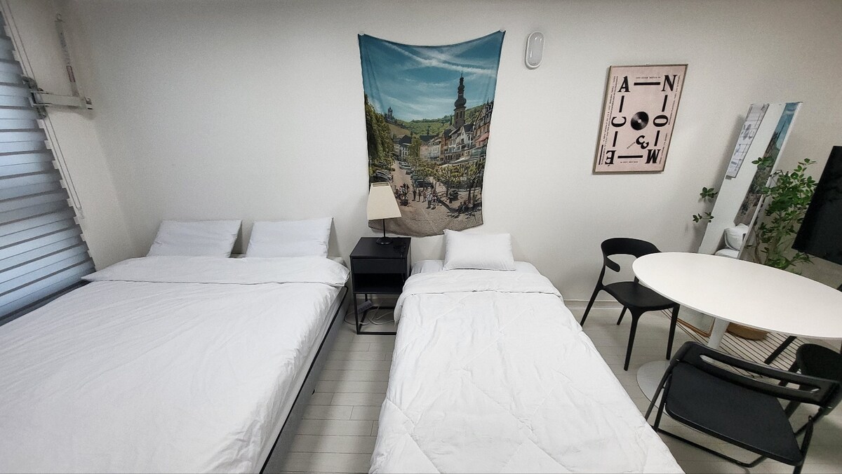 게스트공용공간에 주방도있습니다 주요 명소에서 가까우면서도 독특한 개성을 간직한 숙소입니다. 방1개 화장실1개입니다 - 최대5 명 까지도 가능합니다 . 에어컨이 셋팅이되어있어서 여름에는시원합니다 . 각방마다 겨울에는따뜻합니다 . 뜨거운물온수가 잘되어있습니다 . tv도 설치가 되어있습니다 인터넷연결이 잘되어있습니다 노트북 랜선 연결가능 와이파이도 설치되어있습니다 넓은주차장 여유있게 이용가능합니다 100미터거리에 편의점이있습니다 전객실 전문 소독 /방역업체 이용하고있습니다 전객실 유튜브 가능 스마트 티비입니다 주차 여유있습니다 내부주차장 외부도있습니다 ~~