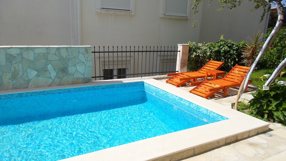 Փախեք դրախտ այս գեղեցիկ բնակարանում, որը գտնվում է Չեռնոգորիայի ŠušAanj - ում: Ապշեցուցիչ ծովային տեսարաններով և պատիոյում շքեղ ջակուզիով դուք կզգաք, որ ապրում եք երազի մեջ: Բնակարանը ժամանակակից է և ապահովում է կատարյալ վայր, որտեղ կարելի է հանգստանալ երկար ժամանակ ուսումնասիրելուց հետո: Անկախ նրանից, թե դուք փնտրում եք ռոմանտիկ հանգիստ, թե ընտանեկան հանգիստ, այս բնակարանն ունի ինչ - որ բան բոլորի համար ։ Ջակուզիում լողանալիս մի բաժակ գինի եք խմում և հետևում եք, թե ինչպես է արևը մայրուղու ներքևում ՝ իսկապես անմոռանալի ։
