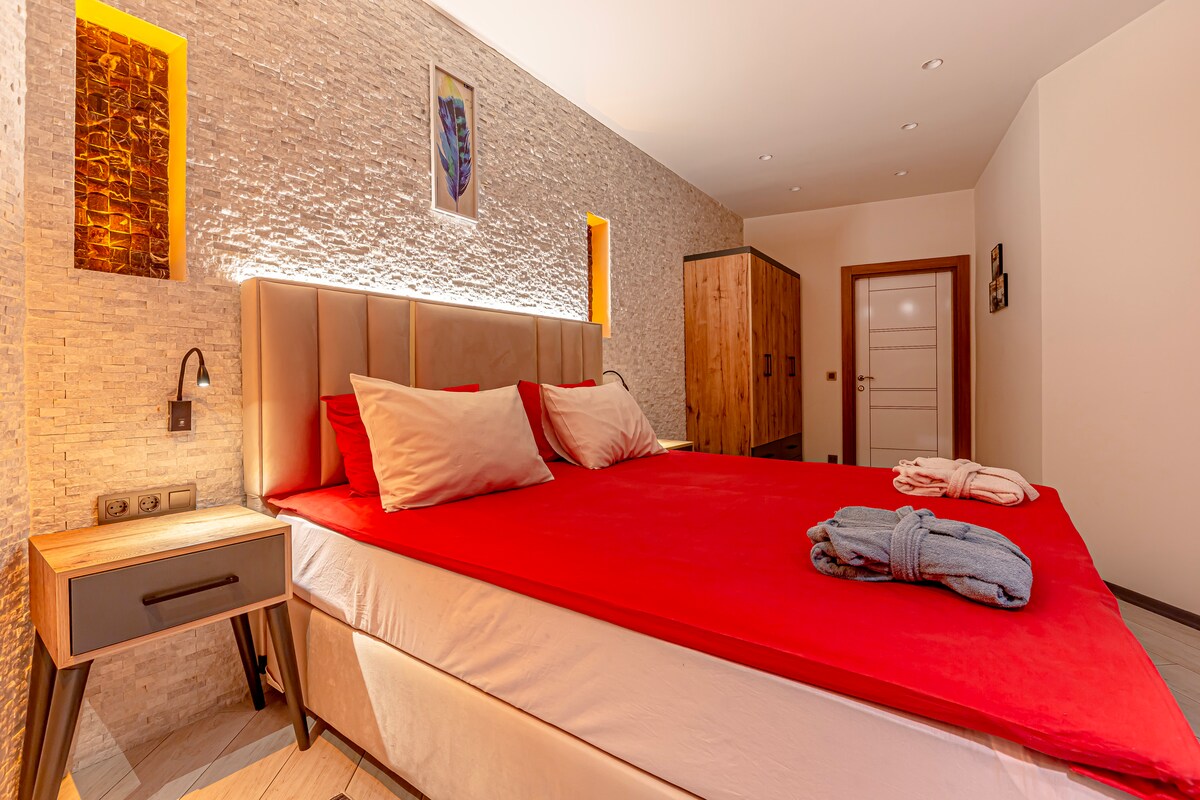 This is our 1 bedroom flat which has the most beautifull seaview in the living room and in the bedroom. We provide a high speed internet. In living room there is a sofa and also could be bed. -Vera Suites is 2 minutes away from Konyaaltı Beach and near all cafes&restaurants. -We can add an extra bed if needed . -We provide a free weekly cleaning for more than 5 days reservation. -We have a reception and a security service 24 hours. You can reach us any time with every request.