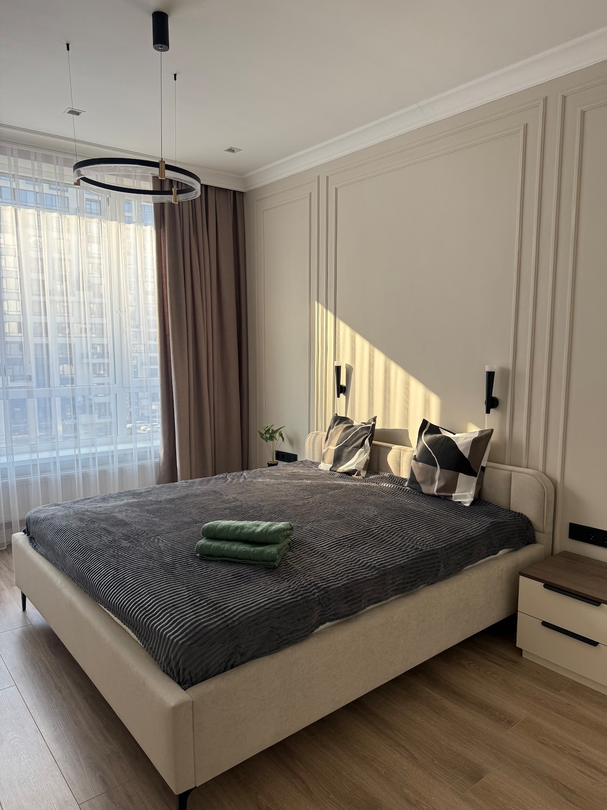 Enjoy your stay in the city centre with a panoramic view of the Zailiyskiy Alatau mountains. Stylish flat in the Arbat business class residential complex, located in the historical centre of our city.