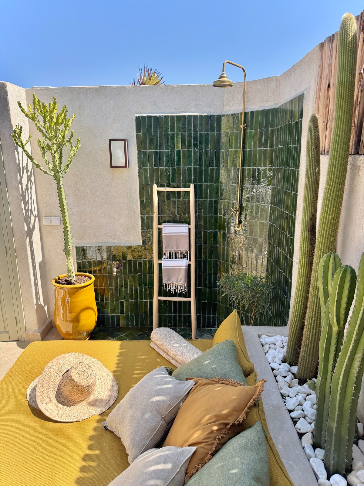 Բարի գալուստ մեր բոհեմական բերբերական տուն, որը բաղկացած է երեք ննջասենյակից և գտնվում է մեկ հեկտարից ավելի տարածք զբաղեցնող ագարակի սրտում։ 150 մ² մակերեսով ներքին տարածքներից կարող եք հիանալ Միջերկրական ծովի լանդշաֆտային պարտեզով և մասնավոր լողավազանով, ընդարձակ ձիթապտղի այգով և Ատլասի լեռներով։ Տունը, որը կենտրոնացած է պատիո-տարածքի վրա, թույլ է տալիս լիովին վայելել լույսը և հանգիստը։ Գույքում կա մեկ այլ լողավազան ։ Իսկական և հարմարավետ՝ անկրկնելի այցի համար։